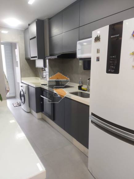 Porcelanato na parede da cozinha e no piso geral do AP