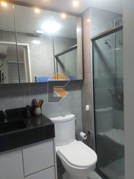 Banheiro social com dispensa planejada no local do box