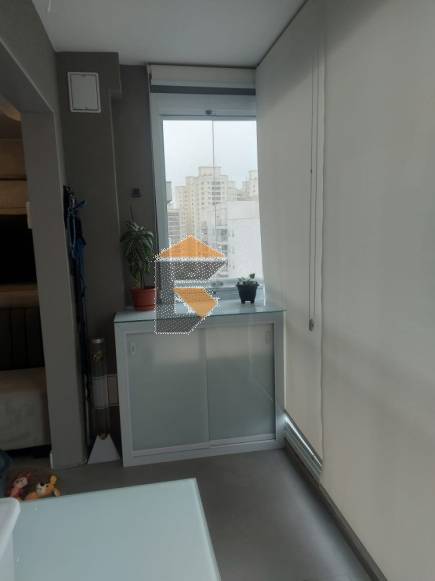 Varanda gourmet com churrasqueira, envidraçamento e com cortina de rolo